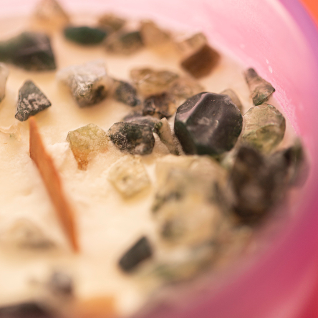 Infusa con cristalli di Agata Muschiata, pietra connessa alla crescita, alla stabilità e all’abbondanza. Usata fin dall’antichità nei riti per attrarre ricchezza e nuove opportunità, l’Agata ti radica mentre ti espandi. Una volta terminata la candela, puoi recuperare i cristalli con delicatezza e conservarli per i tuoi prossimi rituali.