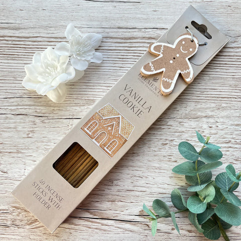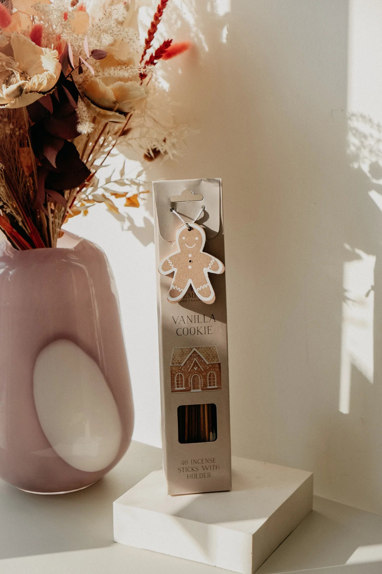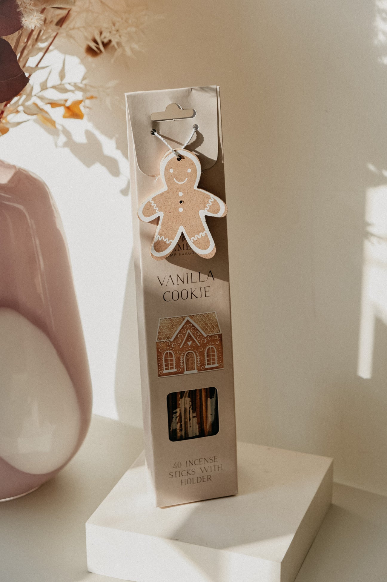 Scopri la dolcezza delle feste con i nostri incensi! Tre fragranze avvolgenti come l'abbraccio di una persona cara. Dentro ogni confezione ci sono 40 bastoncini di incenso + un divertente portaincenso a forma di omino di pan di zenzero.