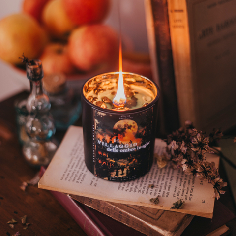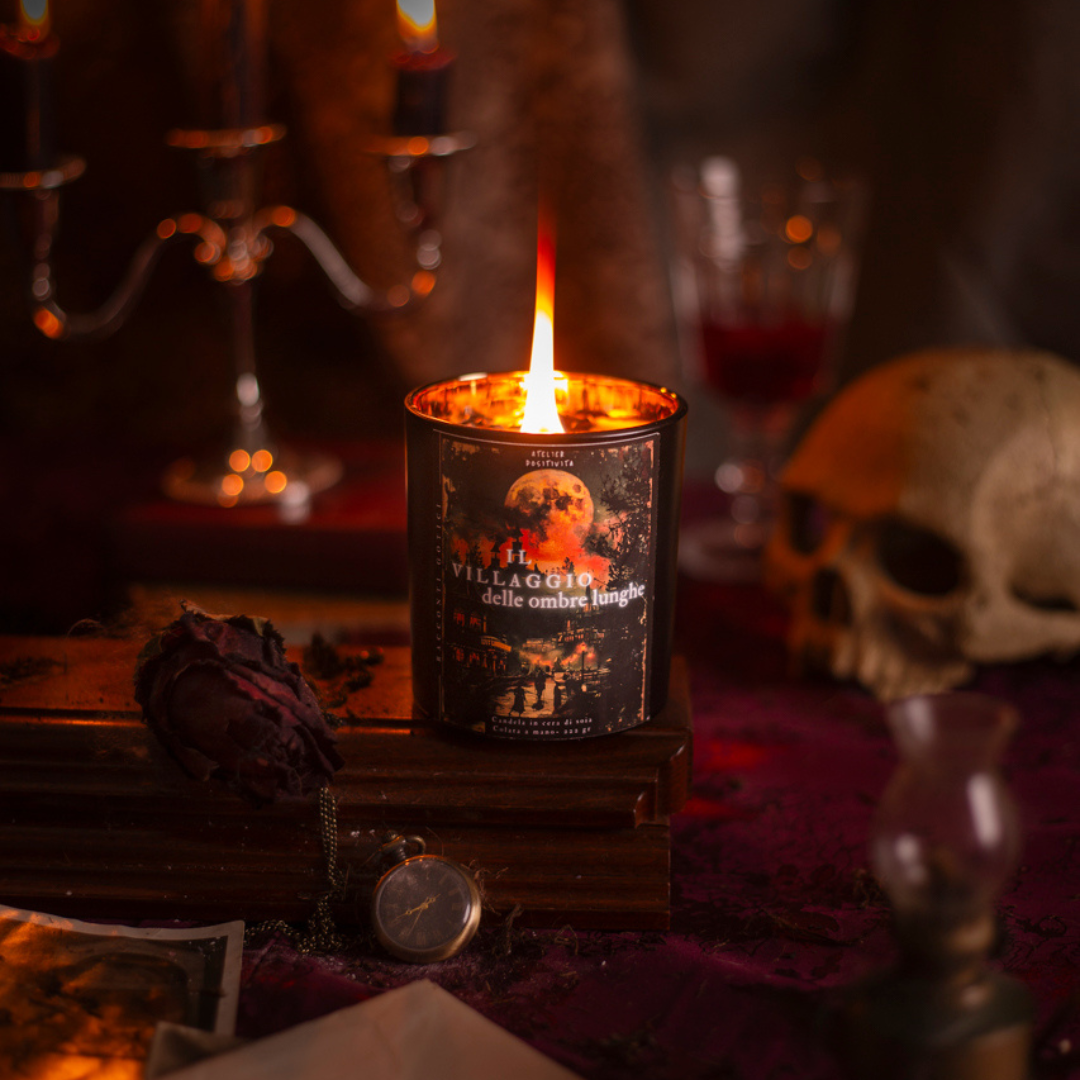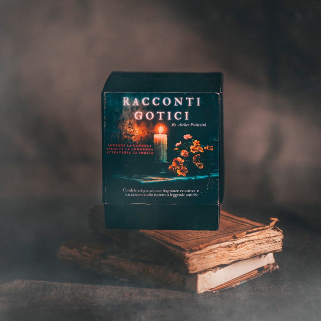 Immagina il tuo momento di relax o di crescita personale così: una fiamma da accendere, mentre arde ascolti un racconto gotico inedito che accompagna il profumo, ti guida in un rituale di trasformazione e ti permette di allontanare realmente tutti i pensieri.